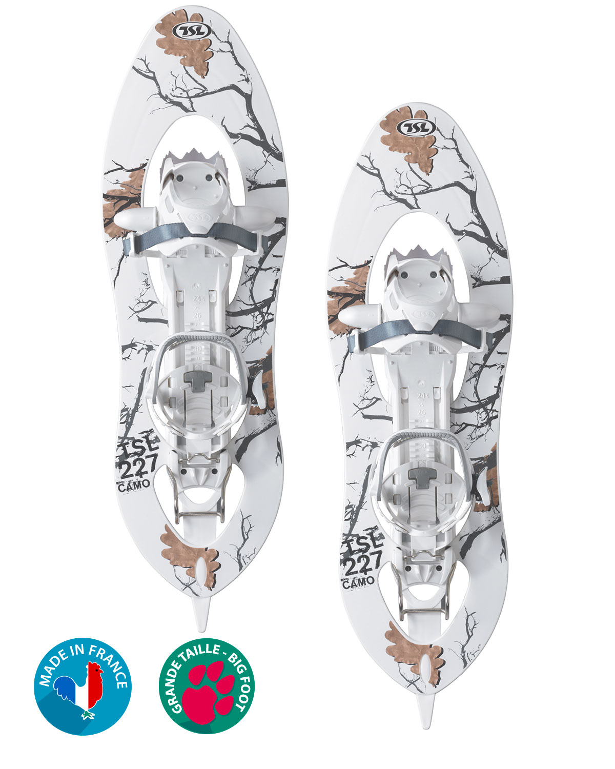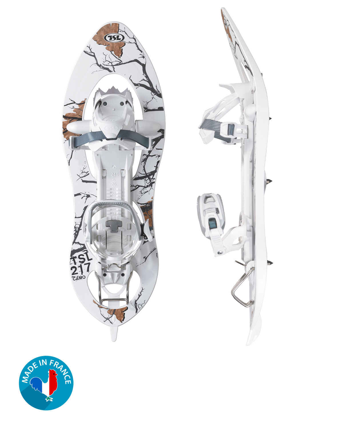 Les Raquettes à Neige Camo 217/227 sont entièrement fabriquées en France par TSL Outdoor. Chosisir TSL, c’est avoir la garantie d’acheter un produit 100 % made in France et un produit de grande qualité. La marque gère l’ensemble du processus de production, de l’injection plastique à l’assemblage.