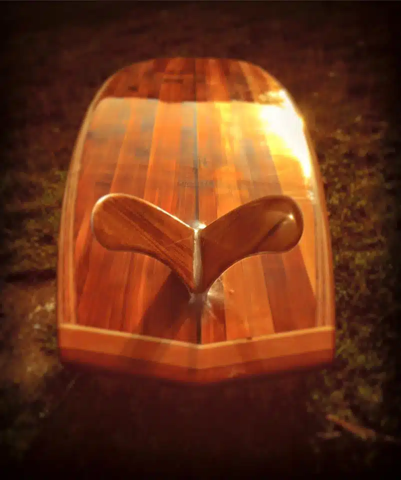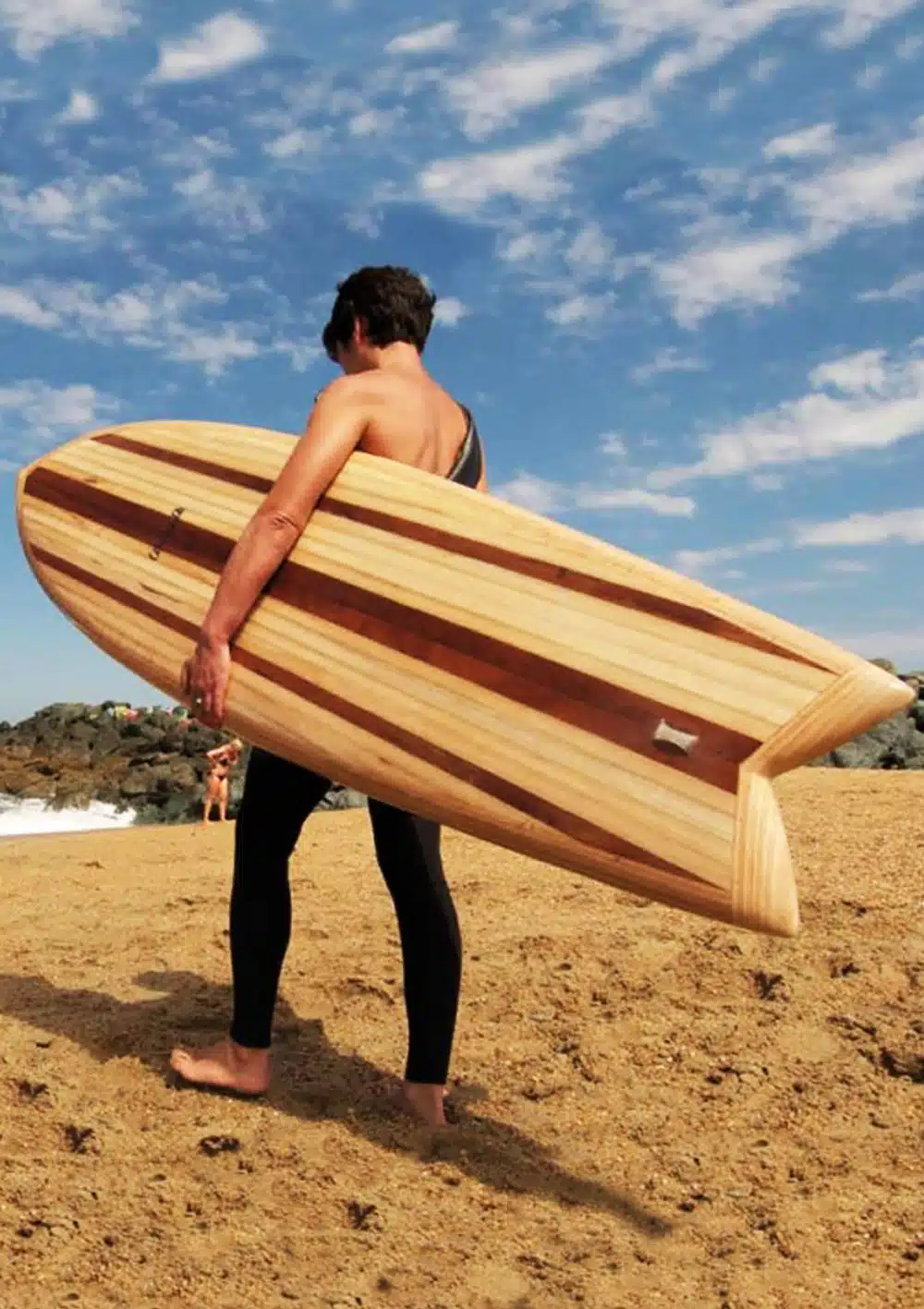 Ce passionné de glisse s’est inspiré des techniques anciennes et les a associées aux nouvelles technologies pour créer des surf de toute beauté entièrement fabriqués à la main à partir d’essences de bois nobles (Cèdre rouge d’Europe FSC).