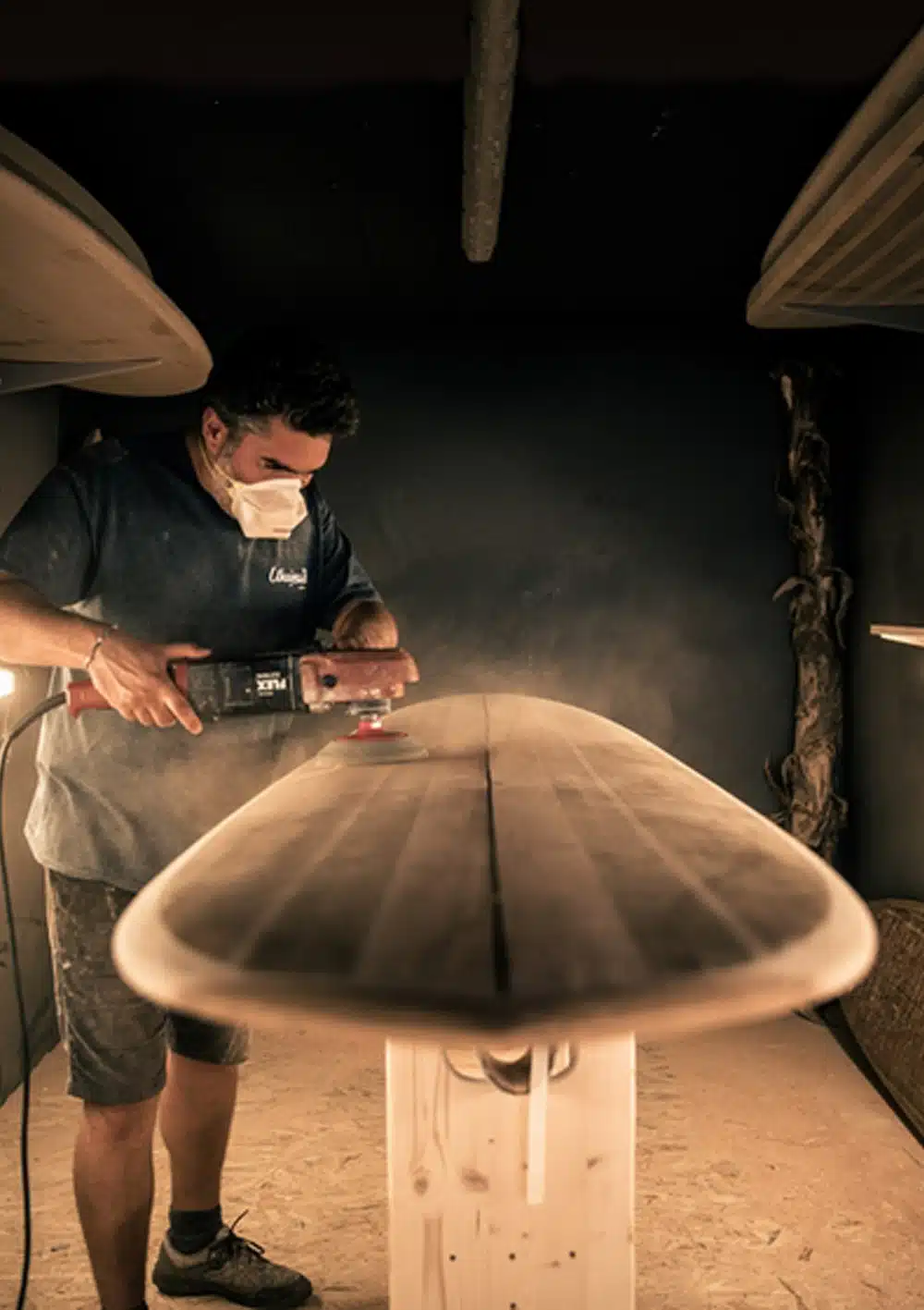Chaque planche est signée à la main et Romain y inscrit le n° de série, l’année de fabrication ainsi que les dimensions exactes de votre board.