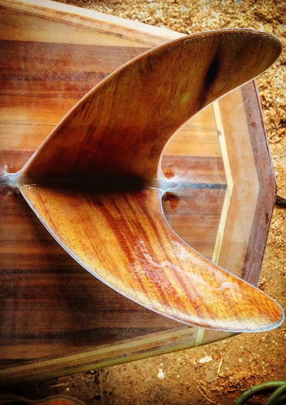 La technique a été inventée par le shaper Tom Blake. Surfeur de légende, dans les années 20, il s’intéresse aux surfs ancestraux exposés au musée de Hawaii. Il les étudie et, après maintes tentatives, il réussit à trouver la structure de base idéale qui, une fois recouverte de lames de bois, va donner une planche réactive et bien plus légère que les planches de l’époque qui sont alors en bois plein.