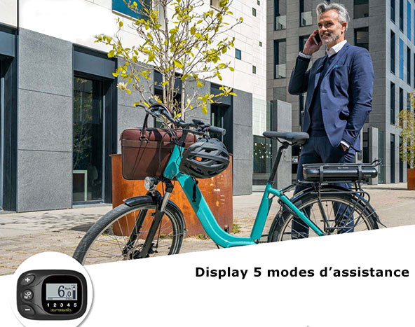 - Ecran LCD 5 niveaux d’assistance pour connaitre l’autonomie restante, l’heure, la vitesse, le totaliseur partiel et total