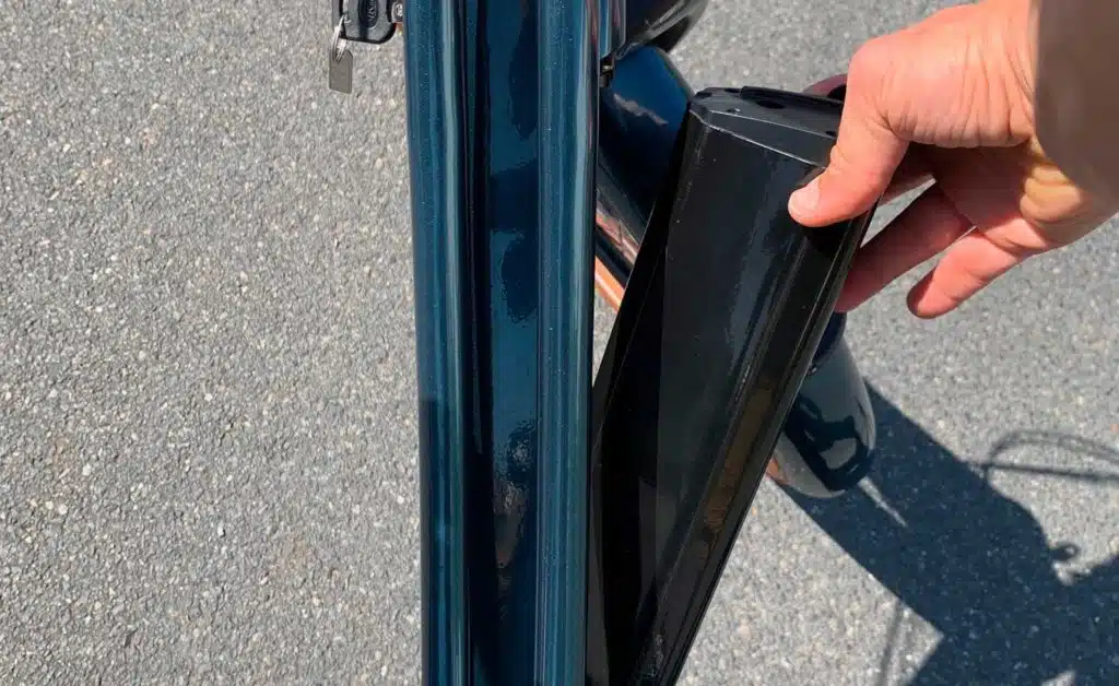 - Phylion B 18 – Haut de gamme au lithium-ion 36 V – 14 A/h – 504 wh – 2,9 kg – Intégrée au cadre –– Extraction latérale pratique et facile – Serrure de verrouillage à clef.